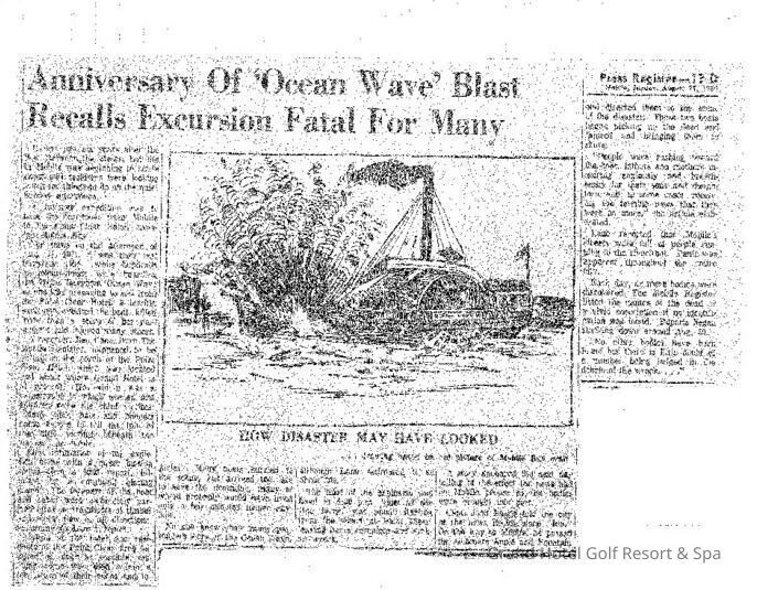 The Ocean Wave bay boat explosion at Point Clear story was retold by the Mobile Press Register on 8-21-1960 on the 90th anniversary of this tragic event, where over 20 lives were lost.Create Date