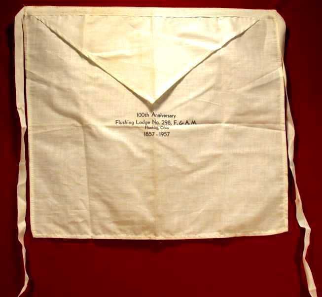 Apron: 100th Anniversary of Flushing Lodge #298 F. & A. M., Flushing Ohio, dated 1857-1957. Blue lettering "100 Anniversary"Entry/Object ID