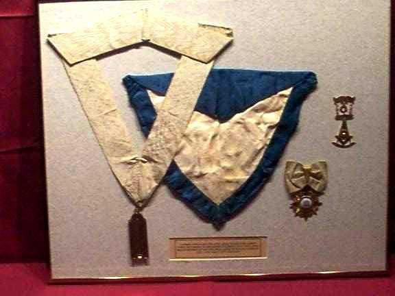 Apron - Apron and leather case. Blue and white Master's apron, black leather apron case. 12" wide blue border, white center triangular shapeCollection