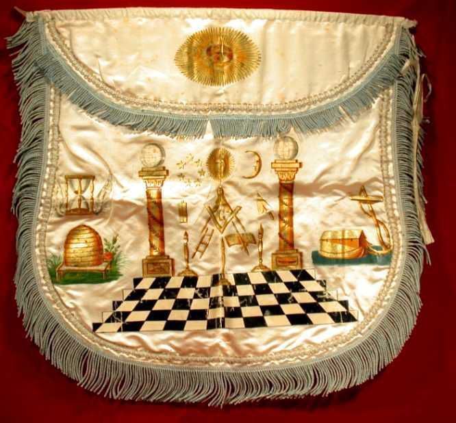 Apron: Hand painted apron, origin unknown. Typlical of those made by the wife or sweetheart of a Mason during the late 18th and early 19th centuries.Entry/Object ID