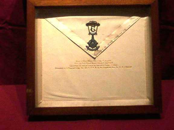 Apron: White lambskin apron and Past Master's Jewel in walnut case presented by Collinwood Lodge #582.Collection