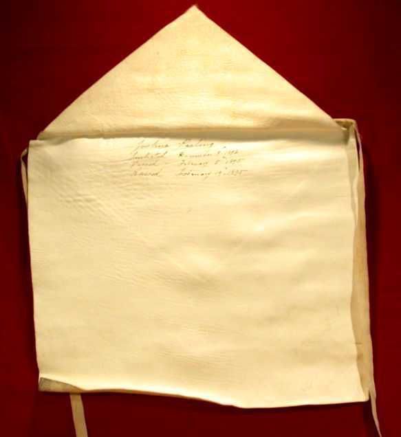 Apron: White leather apron from Joshua Peeling, dated 1894-1895Entry/Object ID