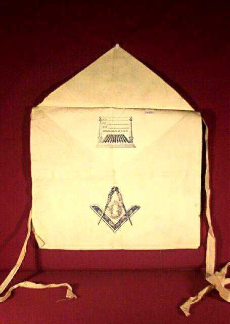 Apron: White leather apron with Square and Compasses on body, eye on flap. No informationCollection