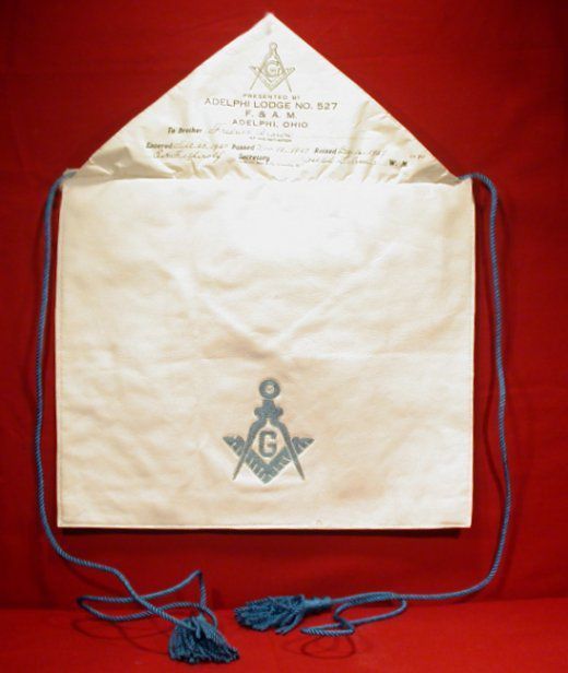 Apron: White leather with pink and blue stitching belonging to Myron SeifertCollection