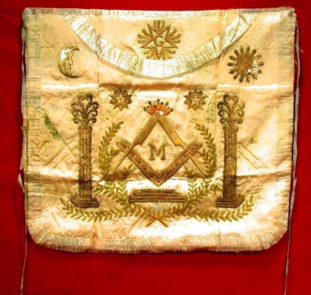 Apron: White silk from Scotland, with sky blue edging, S. & Q. in goldCollection