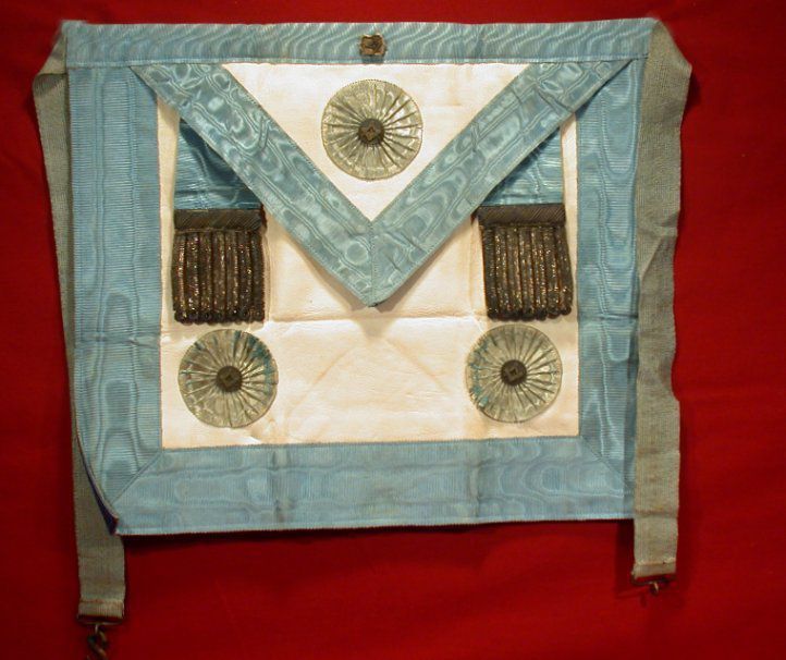 Apron: White with blue edging, from Montreal. Stamp under flap "H. Grant Watchmaker, 2C Norte Dame St., Montreal"Collection