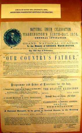 Booklet: "National Union Celebration Washington's Birthday, 1856", white paper with blue ink. View of George Washington in upper left cornerEntry/Object ID
