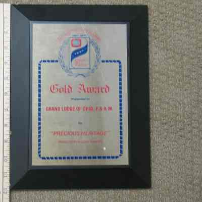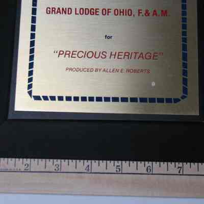 Plaque: Gold Award presented to the Grand Lodge of Ohio, F&AM for "Precious Heritage", produced by Allen E. Roberts by the International Film & TV Festival of New York.Collection