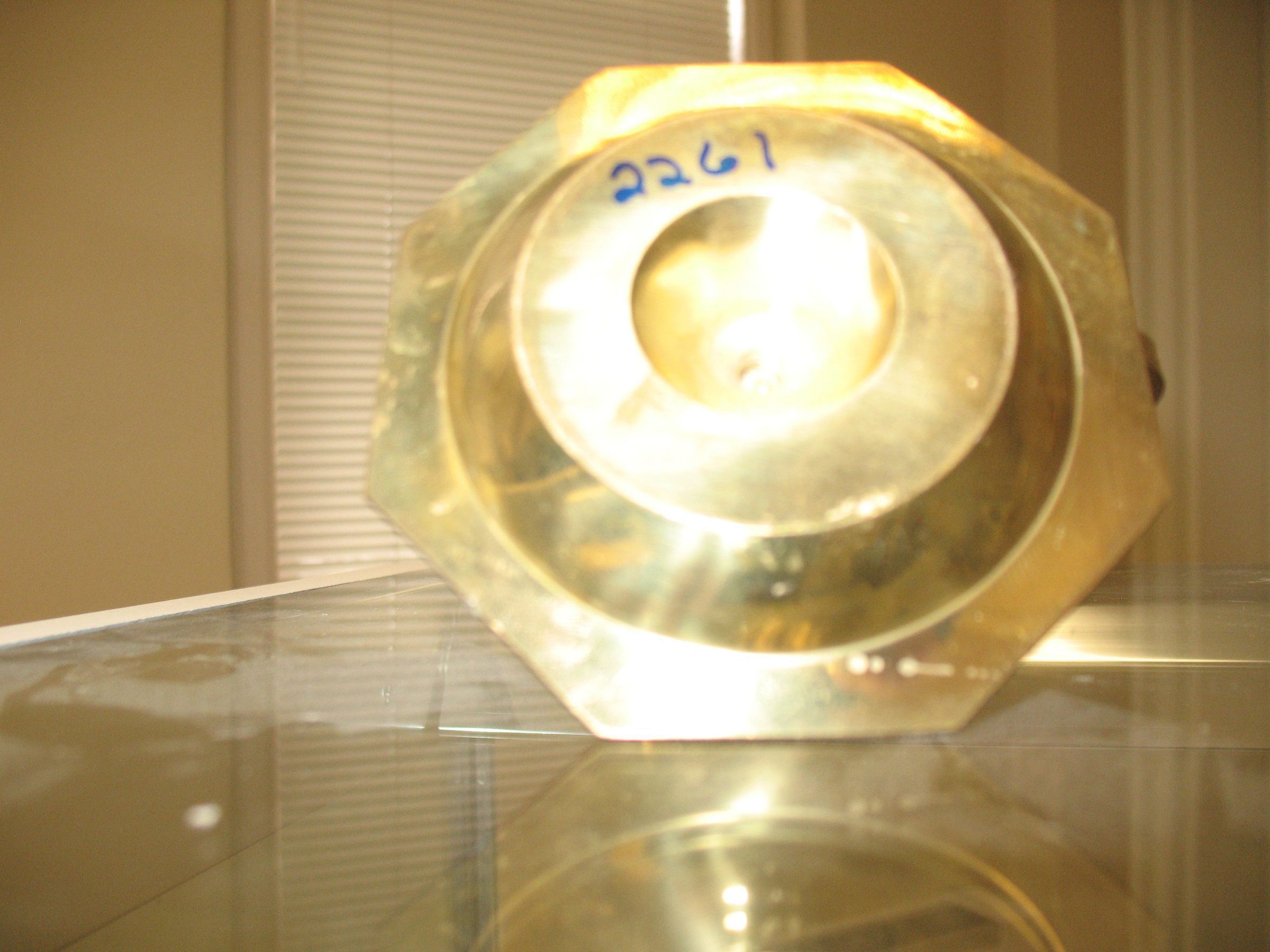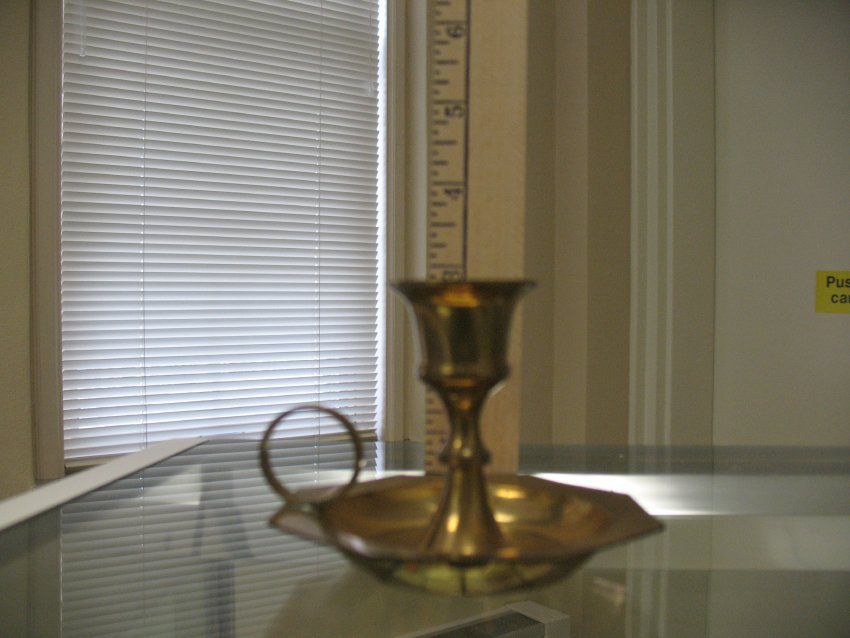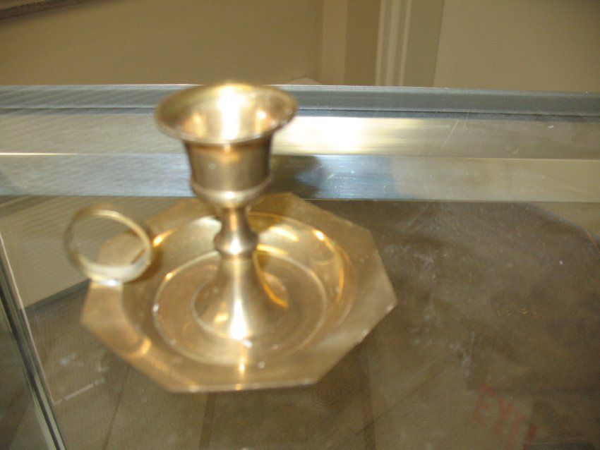 Candleholder: Brass colored single candleholder with handle.Entry/Object ID