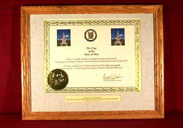 Certificate: Certificate of Authenticity. "This flag having been flown over the Geroge Washington National Memorial"Entry/Object ID