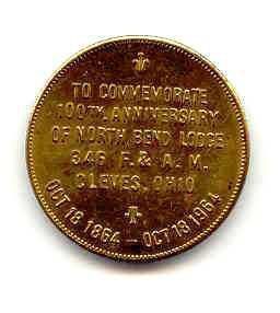 Coin: 100th Anniversary North Bend Lodge #346, Cleves, Ohio, dated October 18, 1854-October 18, 1954Entry/Object ID