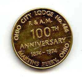 Coin: 100th Anniversary Ohio City Lodge #486, Martins Fery, Ohio. Dated 1874-1974Entry/Object ID
