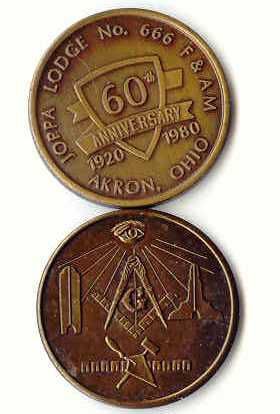 Coin: Joppa Lodge #666, Akron, Ohio, Sixty years of Mo=asonry, 1920-1980Entry/Object ID