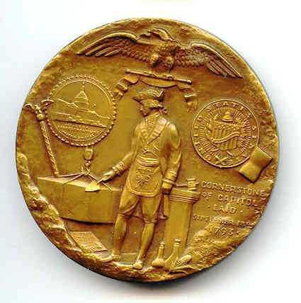 Coin/Medal: Authorized by the U. S. Capitol Historical Society in 1971 commemorating the Msonic corner stone laying by Bro. George Washington on Septemer 18, 1793. 2 1/2" dia. with engravingEntry/Object ID