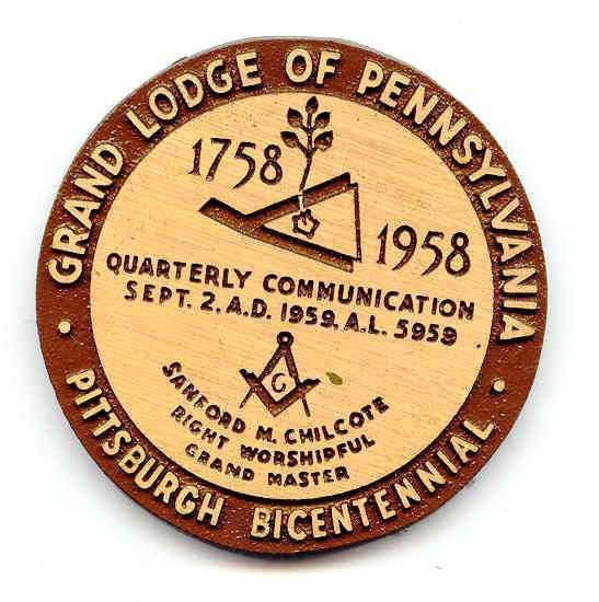 Coin/Medal: Grand Lodge of Pennsylvania, Pittsburgh Bicentennial, 1758-1958. 3 1/8" dia.Entry/Object ID