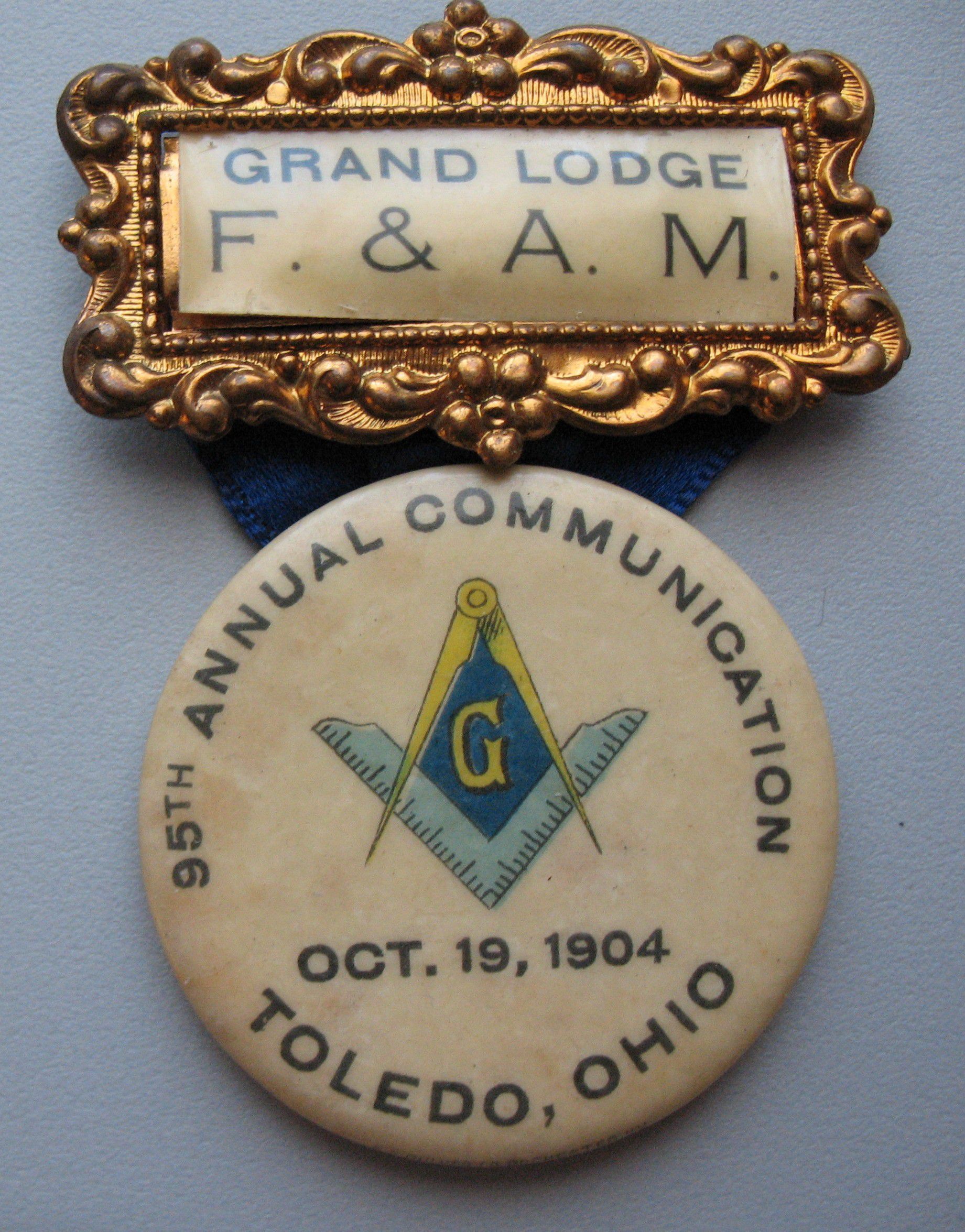 Badge: 95th Annual Communication held Oct 19, 1904 at Toledo, Ohio. Pin, bar, ribbon badge, 2 1/2"Collection