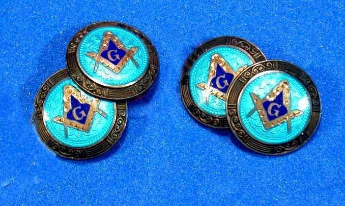 Link, Cuff: With Square and Compasses. SIlver color with blue faceEntry/Object ID