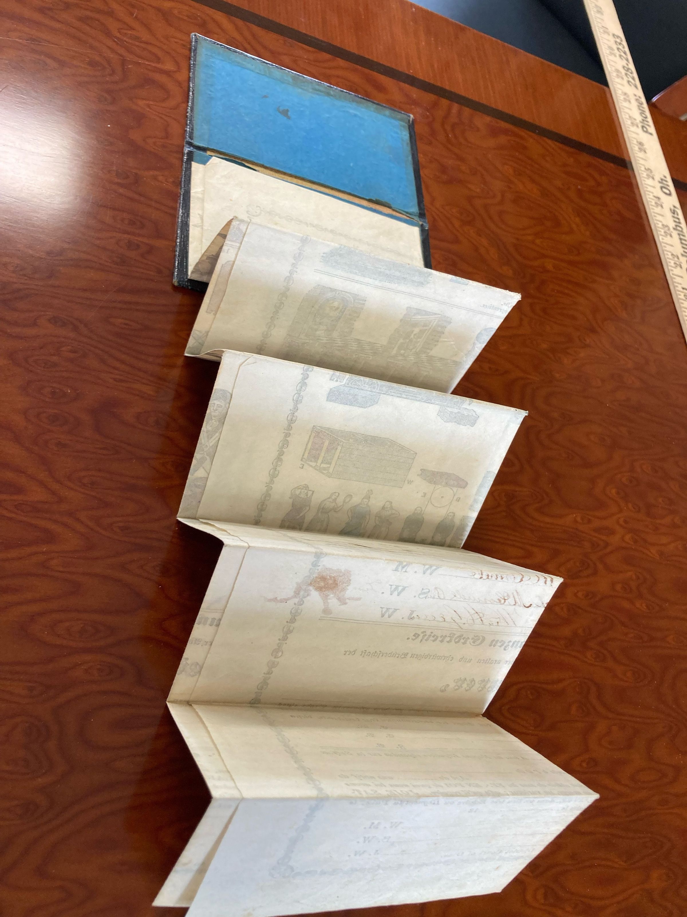 Folds into a booklet that is 3 x 4 and 1/2 inchesLocation