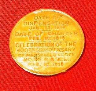 Metal Coin - 100th Anniversary of Mansfield Lodge #38 F. & A.M. 1818-1918Collection