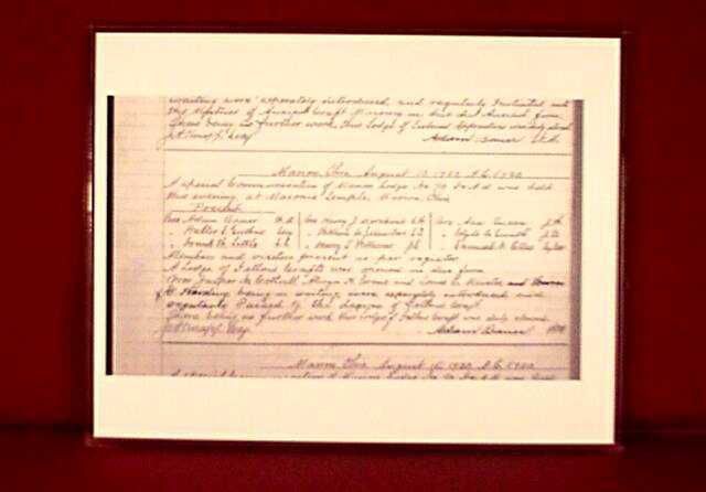 Minutes: Copy of the minutes from Marion Lodge #70 showing "Warren G. Harding" being passed to the degree of Fellowcraft. Dated August 30, 1920. Laminated.Entry/Object ID