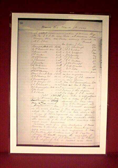 Minutes: Copyof Minutes fromMarion Lodge #70 showing the reading of petition of Warren G. Harding to recieve the Entered Apprentise Degree. Dated March 1, 1901. Laminated.Entry/Object ID