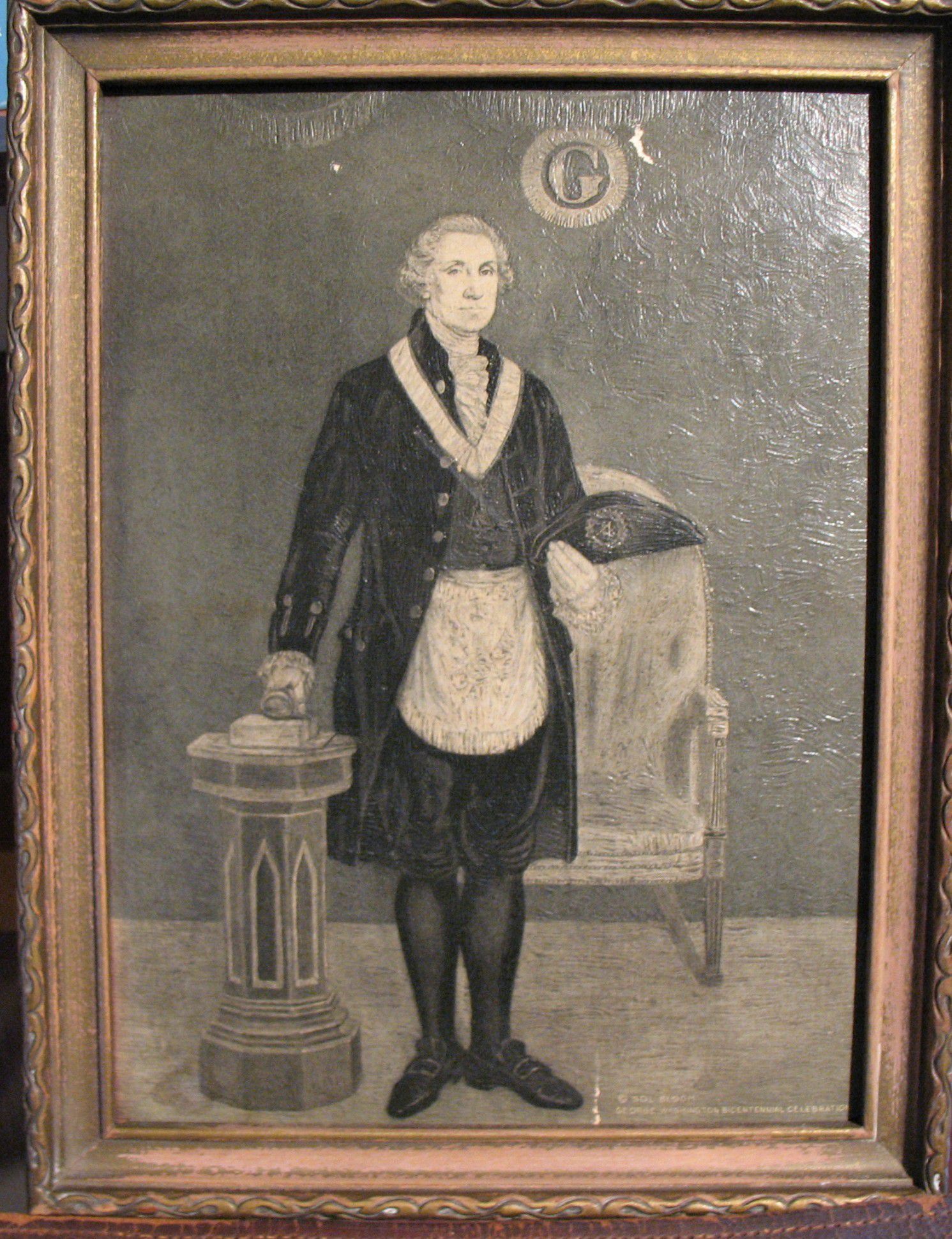 Painting: George Washington in his Masonic regalia. Black and white reproduction in a 8" x 10" frame. More information on the backCollection