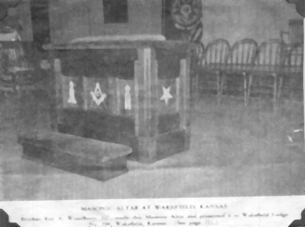 Photograph: Masonic Altar, Wakefield, Kansas. Built by Brother Roy A. Woodbury and presented to Wakefield Lodge No. 396Collection