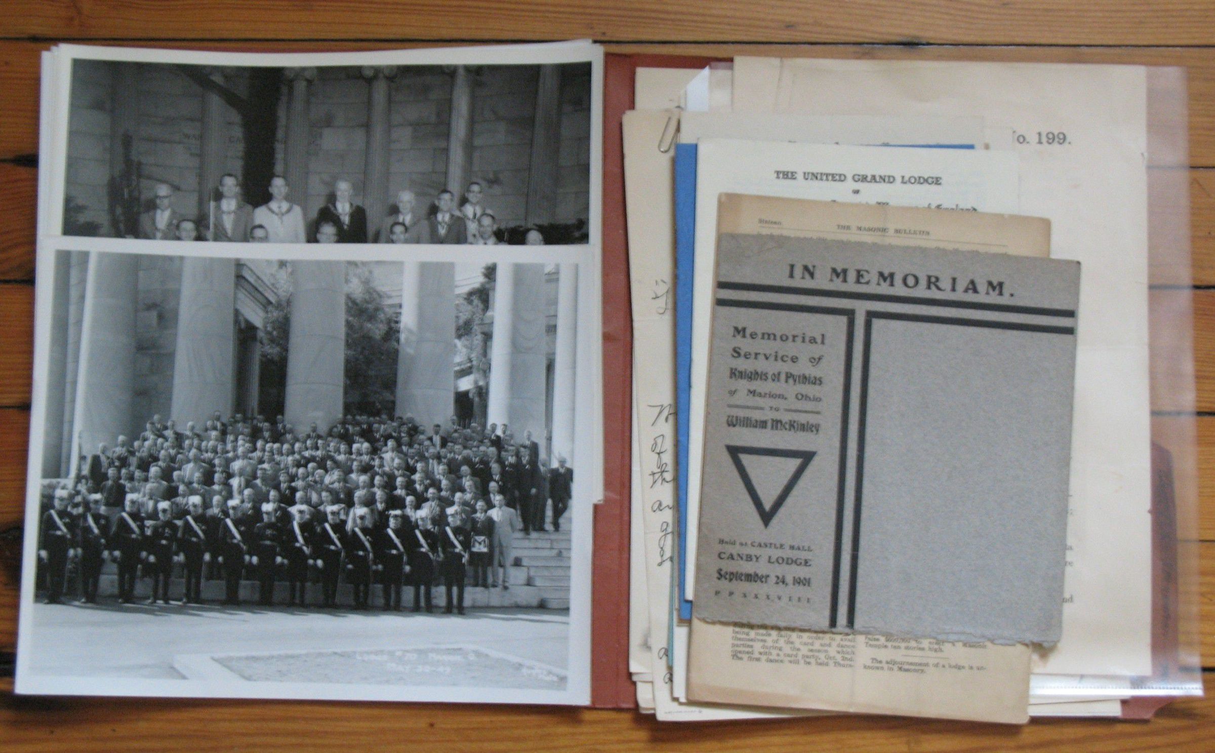 Photograph: Folder of Masonic keepsakes of N. A. Daily. Included in the folder are 12 10" x 8" black and white photos of Marion Lodge No. 70s visit to Warren G. Hardings Memorial on May 30, 1949.Collection