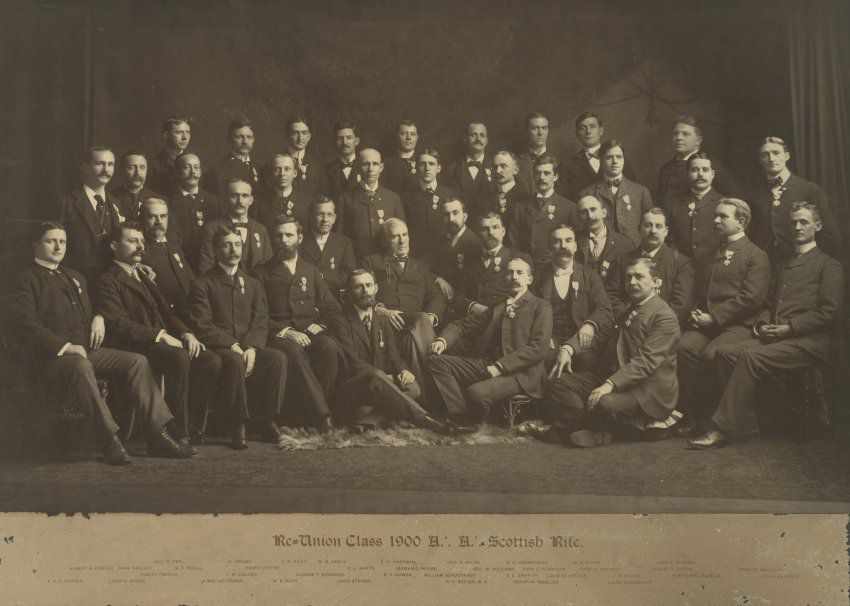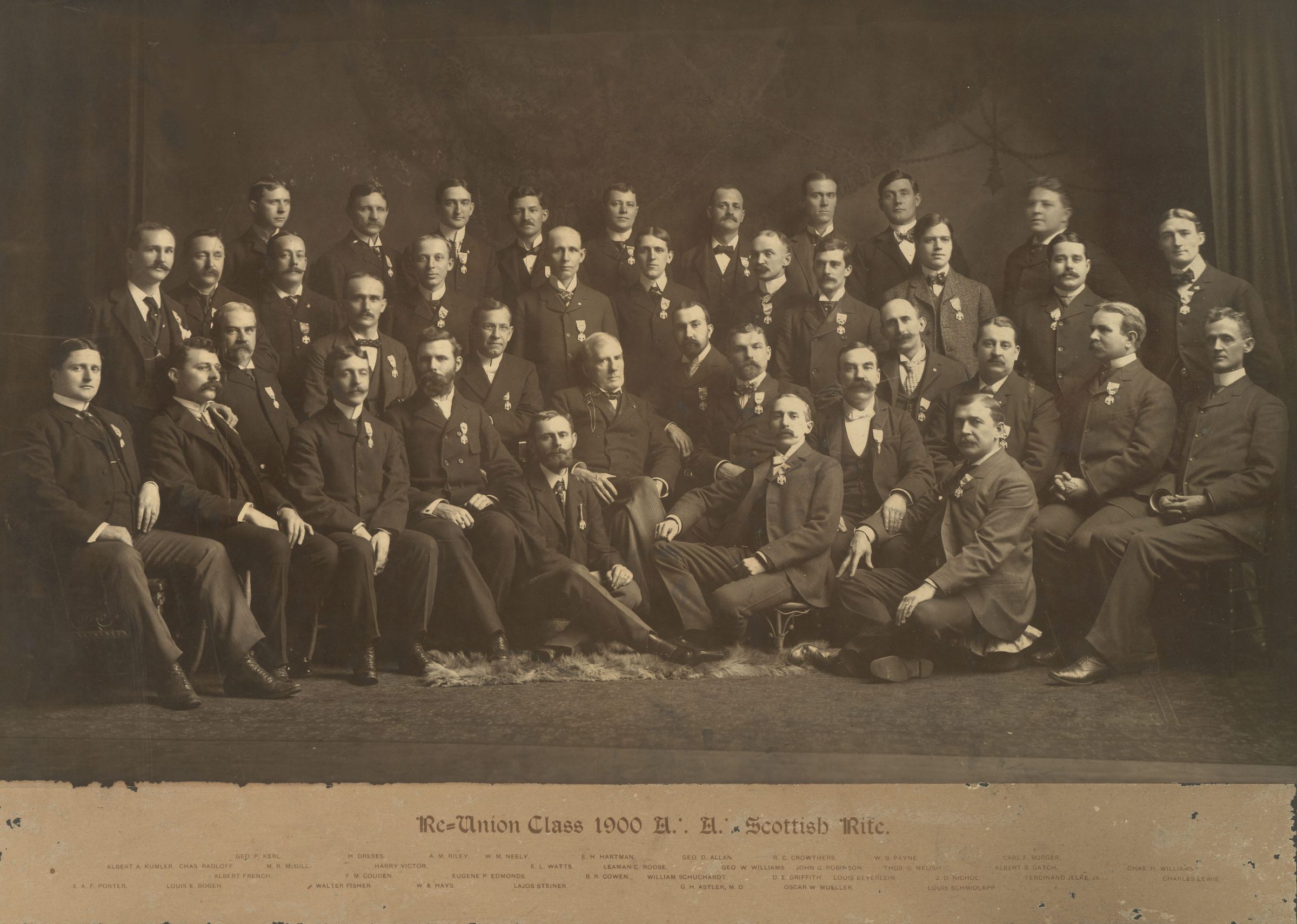Photograph: Photograph of 1900 Reunion Class of Scottish Rite. All names listed. Framed print is 29.5" x 23".Collection