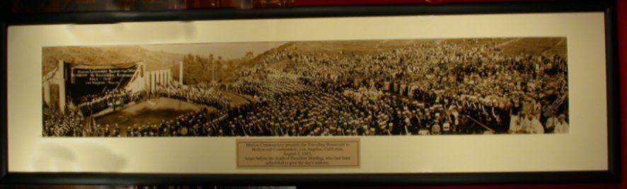 Photograph: Marion Commandary presenting Traveling Beauseant to Hollywood Commandary, Los Angeles, California. Framed, 14" x 46". Black frameCollection