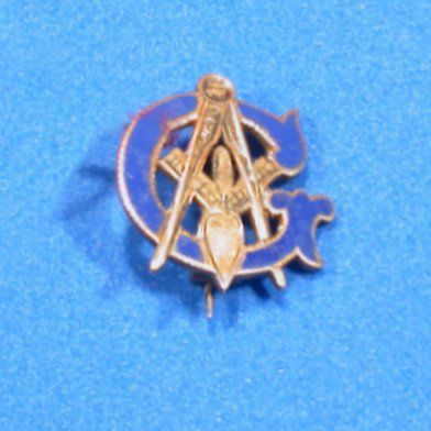 Pin, Fraternal: Masonic pin with Square and COmpasses. Large letter "G" in blueEntry/Object ID