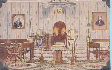 Postcard: Interior view of the original Lodge room of Alexandria Lodge No. 22, Alexandria, Virginia which was destroyed by fire in 1871Collection
