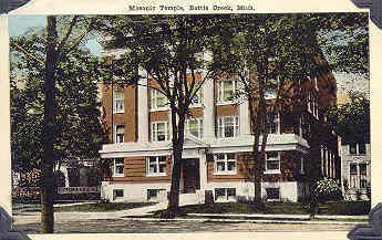 Postcard: Masonic Temple, Battlecreek, Michigan. Froma collection of photos of Msonic Temples, collector unknownEntry/Object ID
