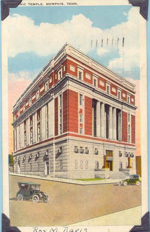 Postcard: Masonic Temple, Memphis, Tennessee. Postmarked October 2, 1927. From a collection of photos of Masonic Temples, collector unknownEntry/Object ID