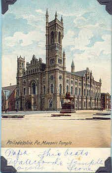 Postcard: Masonic Temple, Philadelphia, Pennsylvania. Postmarked June 14, 1906. From a collection of photos of Masonic Temples, collector unknownEntry/Object ID