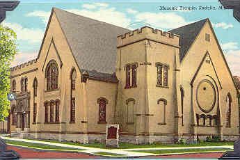 Postcard: Masonic Temple, Sedalia, Missouri. Postmarked August 1, 1949. From a collection of photos of Masonic Temples, collector unknown.Entry/Object ID