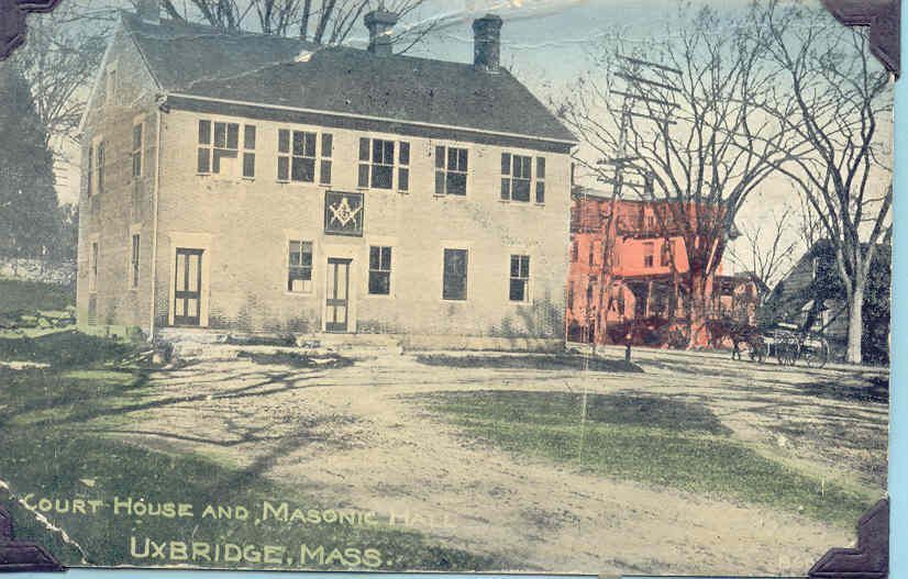 Postcard: Masonic Temple, Uxbridge, Massachusetts. Postmarked August 19, 1913. From a collection of photos of Masonic Temples, collector unknownEntry/Object ID