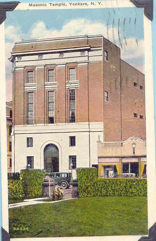 Postcard: Masonic Temple, Yonkers, New York. Postmarked September 9, 1930Entry/Object ID
