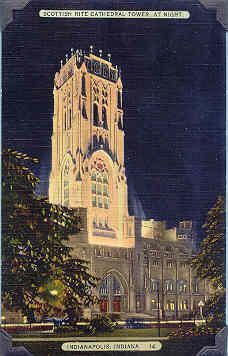 Postcard: Scottish Rite Cathedral, Indianapolis, Indiana, at nightCollection