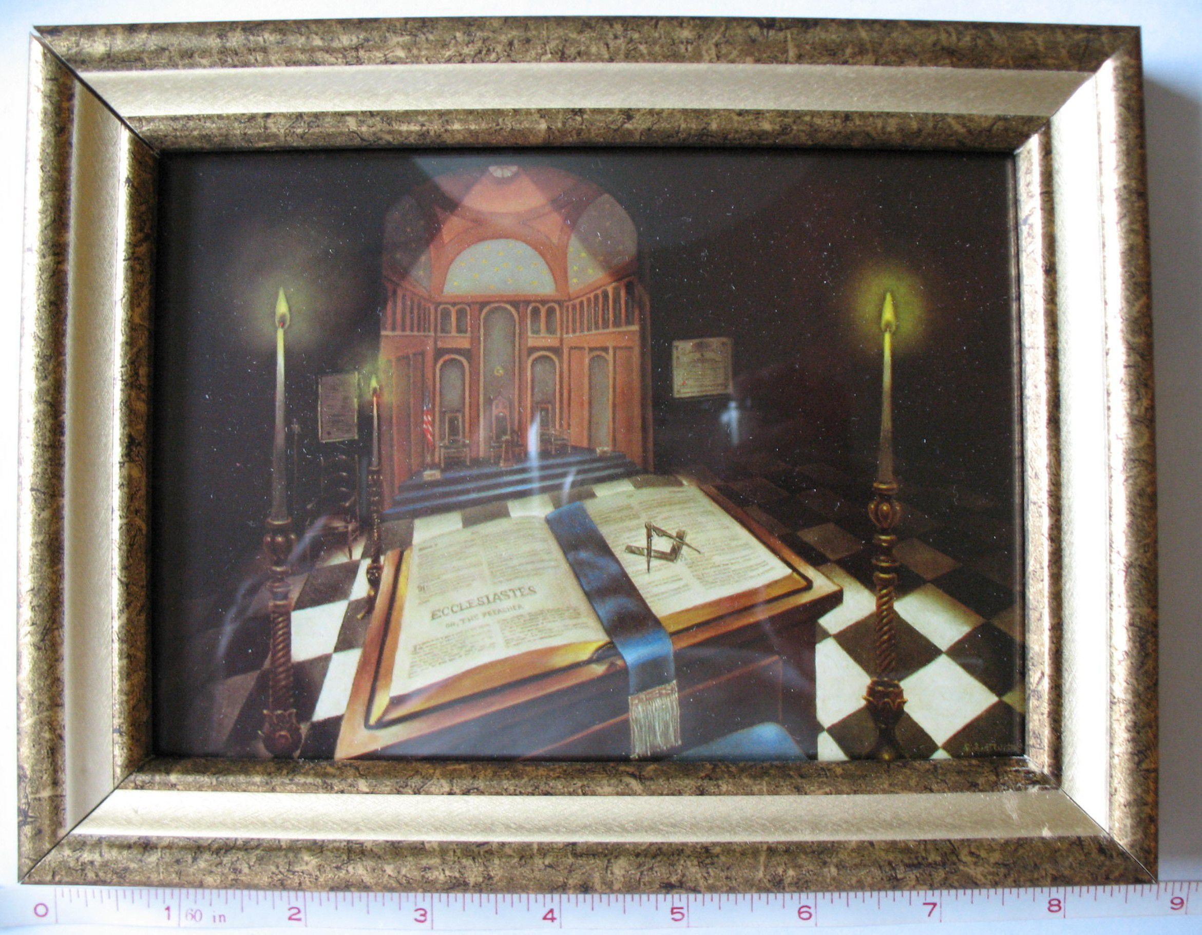 Print: Color print entitled "The Three Great Lights of Masonry", a 150th anniversary gift from the Grand Lodge A.F.& A.M. of Minnesota. 7" x 5" print in a 3/8" x 6 1/2" gold colored frameCollection