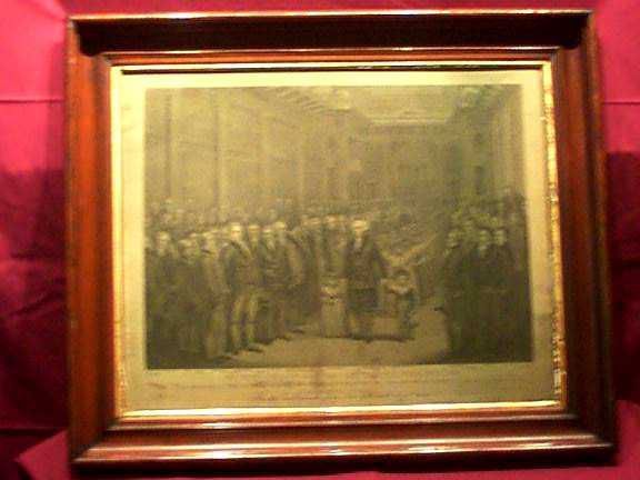 Print: Lithograph of George Washington with a group of distinguished MasonsEntry/Object ID