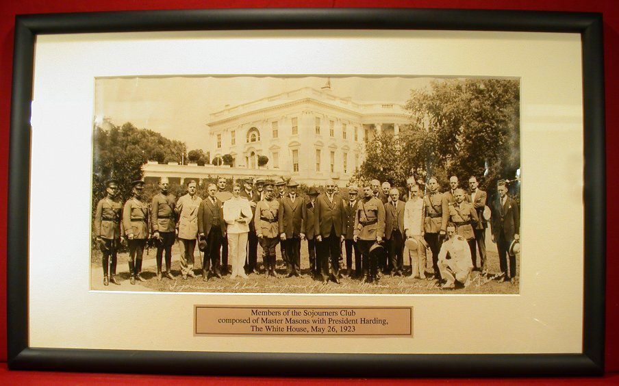 Print/Photograph: Members of Sojourners Clubs comprised of Master Masons, with President Warren G. Harding in front of the White House, Washingtyon, D.C. Dated May 26, 1923. 15" x 26" framedCollection