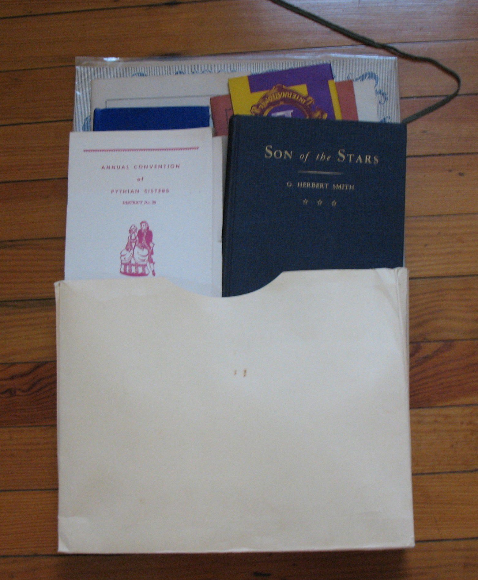 Printed Material: Pythian Sister: Ritual, Monitor, and a 1947 program. Lions Club: Certificate and song book. Delta Kappa Camma Constiutuion and By-laws. Phi Chi Program, Sweetheart of Sigma Chi music, civic Club booklet, 2 Dome of the Rock Books, Beta Theta Pi 1939 history.Collection