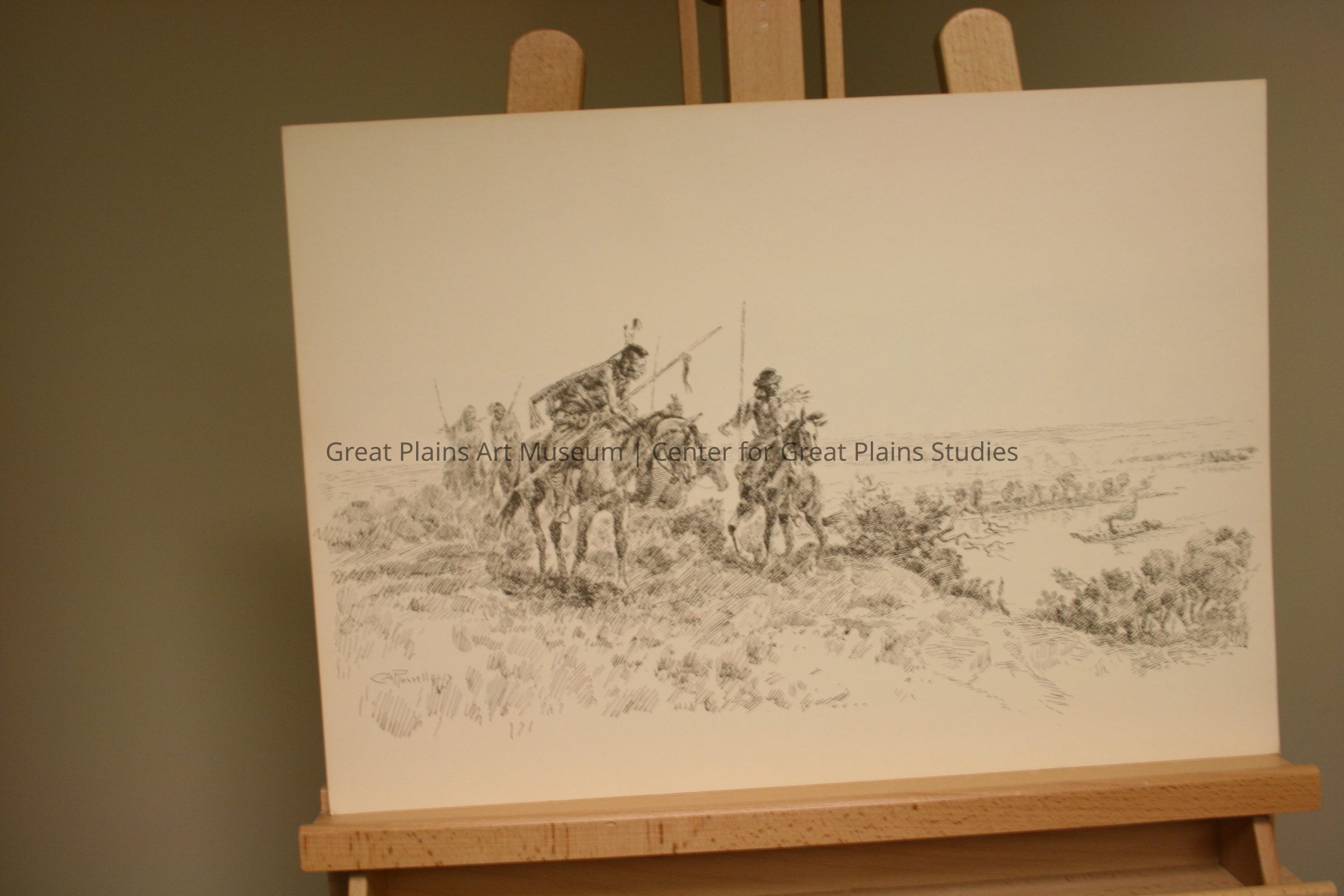 The Conservation of Charles M. Russell portfolio: The First Fire Canoe Nears Fort Union
