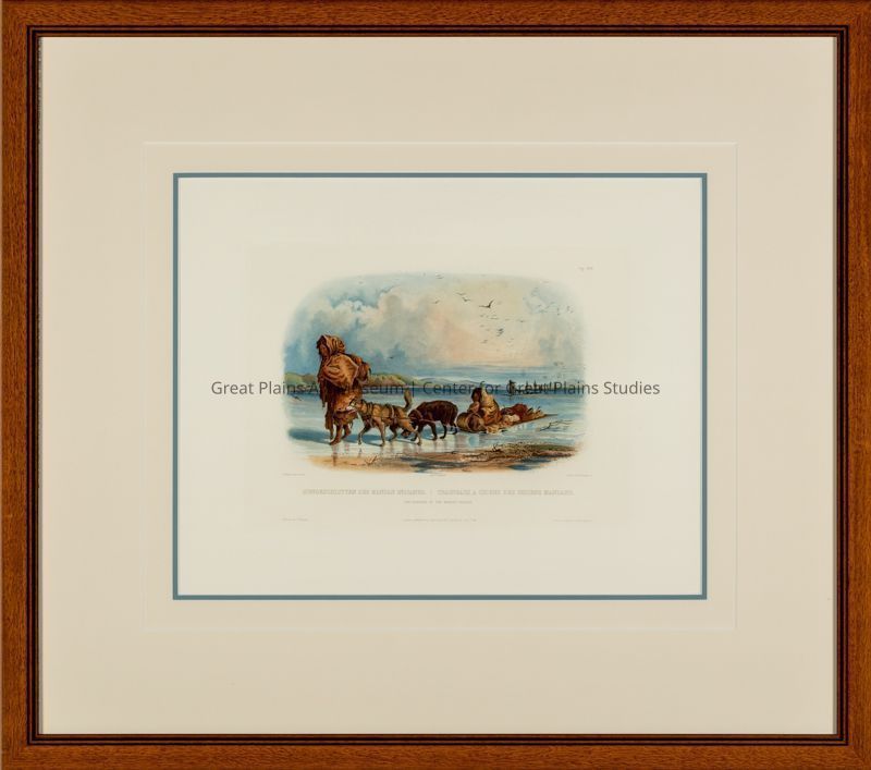Clouds, Dogs, Domestic Animals, Fort Clark, North Dakota, Ice, Lakes, Landscapes, Men, Mandan (Native Americans), Maximilian-Bodmer Expedition, Native Americans, North Dakota, Plains (Native Americans), Rivers, Snow, Transportation, Water, Winter, Women