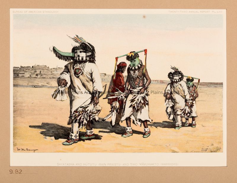 Sayataska and Hututu (Rain Priests) and Two Yamukakto (Warriors)