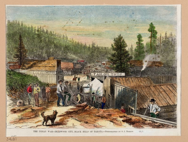 Animals, Black Hills, South Dakota, Buildings, Cities, Deadwood, South Dakota, Dogs, Domestic Animals, Men, Plants, South Dakota, Trees, Westward Expansion