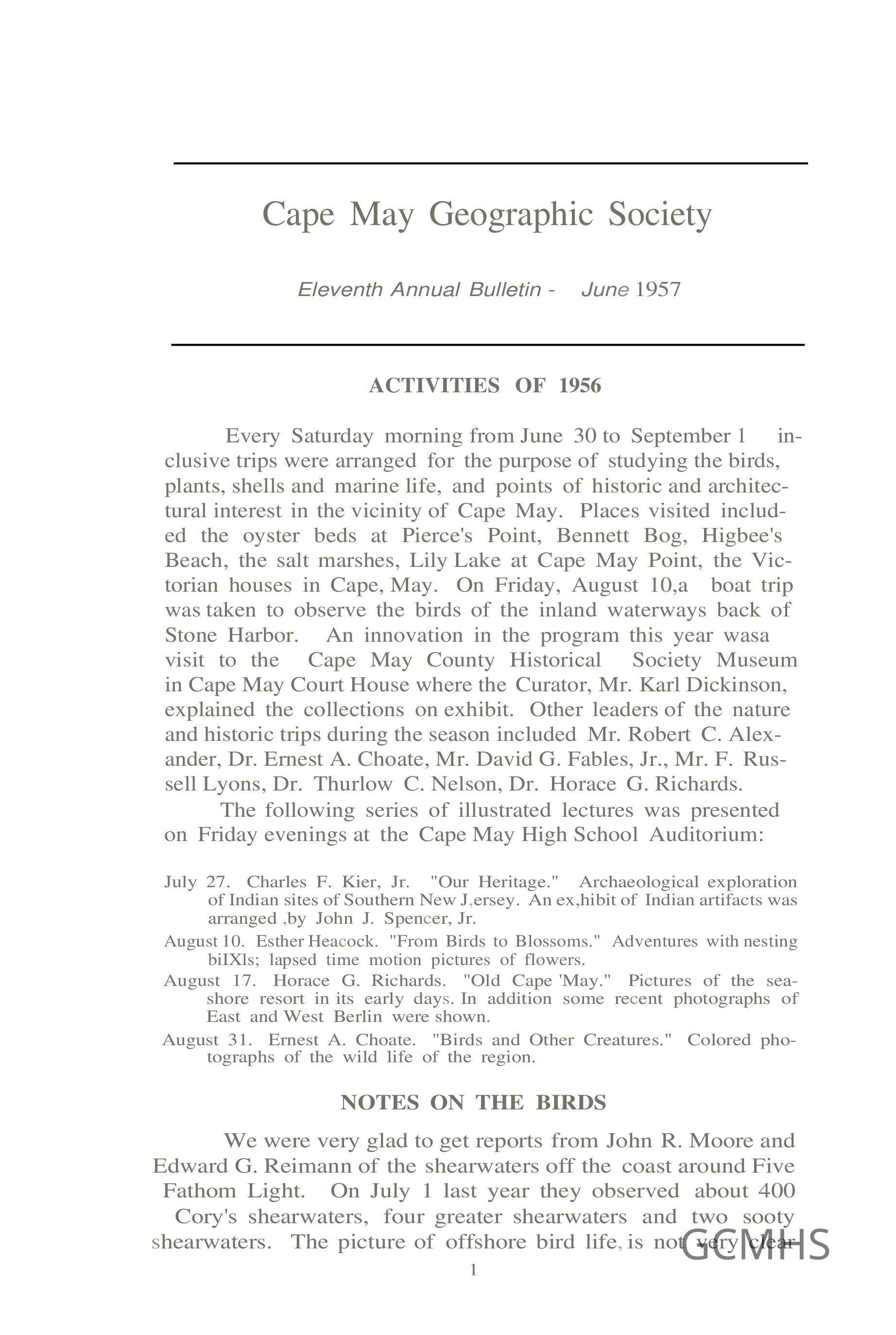 1957 Cape May Geographic Society Eleventh Annual Bulletin - JuneDescription