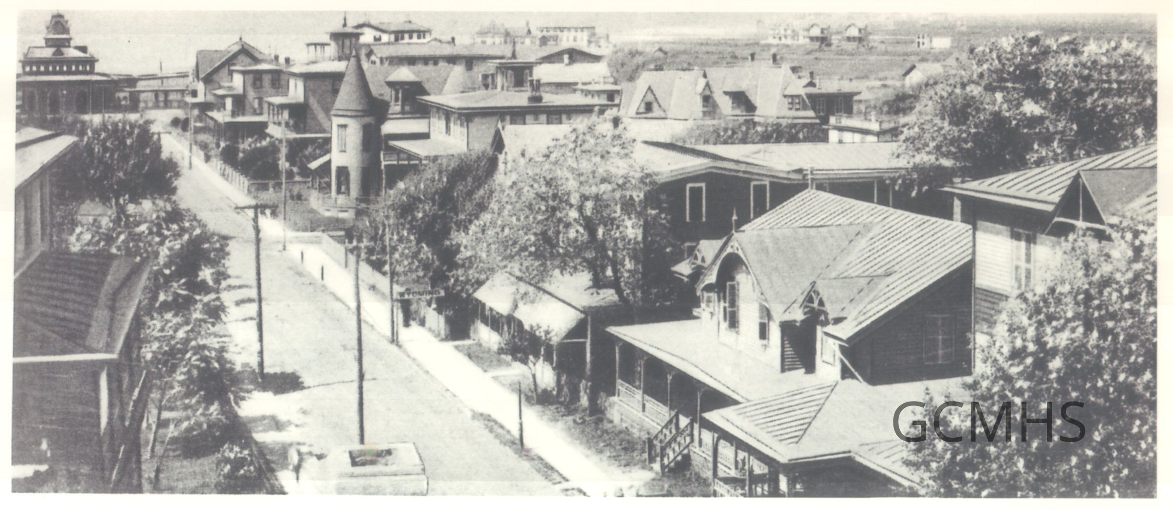 Probably a reprint of an older photograph that depicts the Pennsylvania Railroad's Grant Street Station also known as the Summer Station in Cape May, NJ.