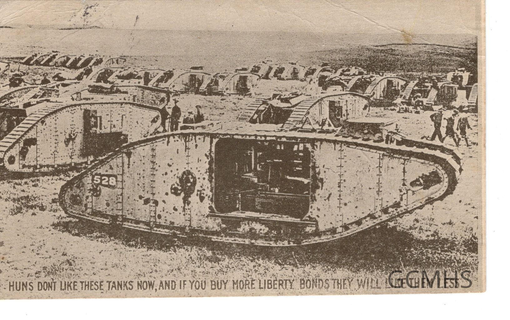 Includes one B&W photo post card that depicts armored tanks on the beach. The card is signed, "Aunt Edith," who asks if he will be rich enough to buy a Liberty Bond. The card is addressed to Ogden at Exeter Academy in New Hampshire.Collection